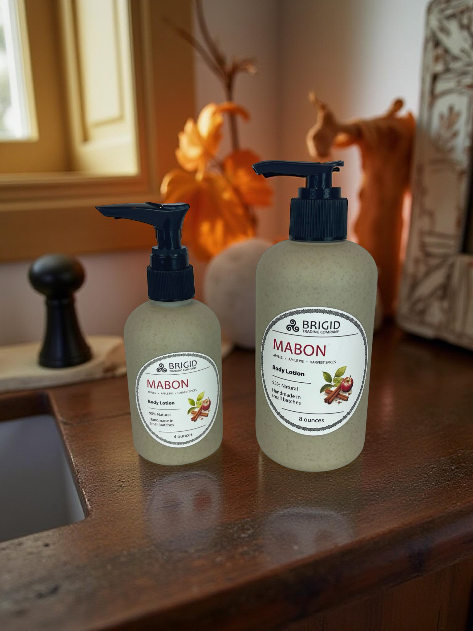 Our house-blended Mabon natural body lotion combines crisp McIntosh and Granny Smith apples, warm harvest spices, and the sweetness of apple pie. Perfect for Mabon rituals, autumn altars, or as a thoughtful Autumn Equinox gift, our Mabon natural body lotion brings both seasonal bliss and spiritual meaning to your space.